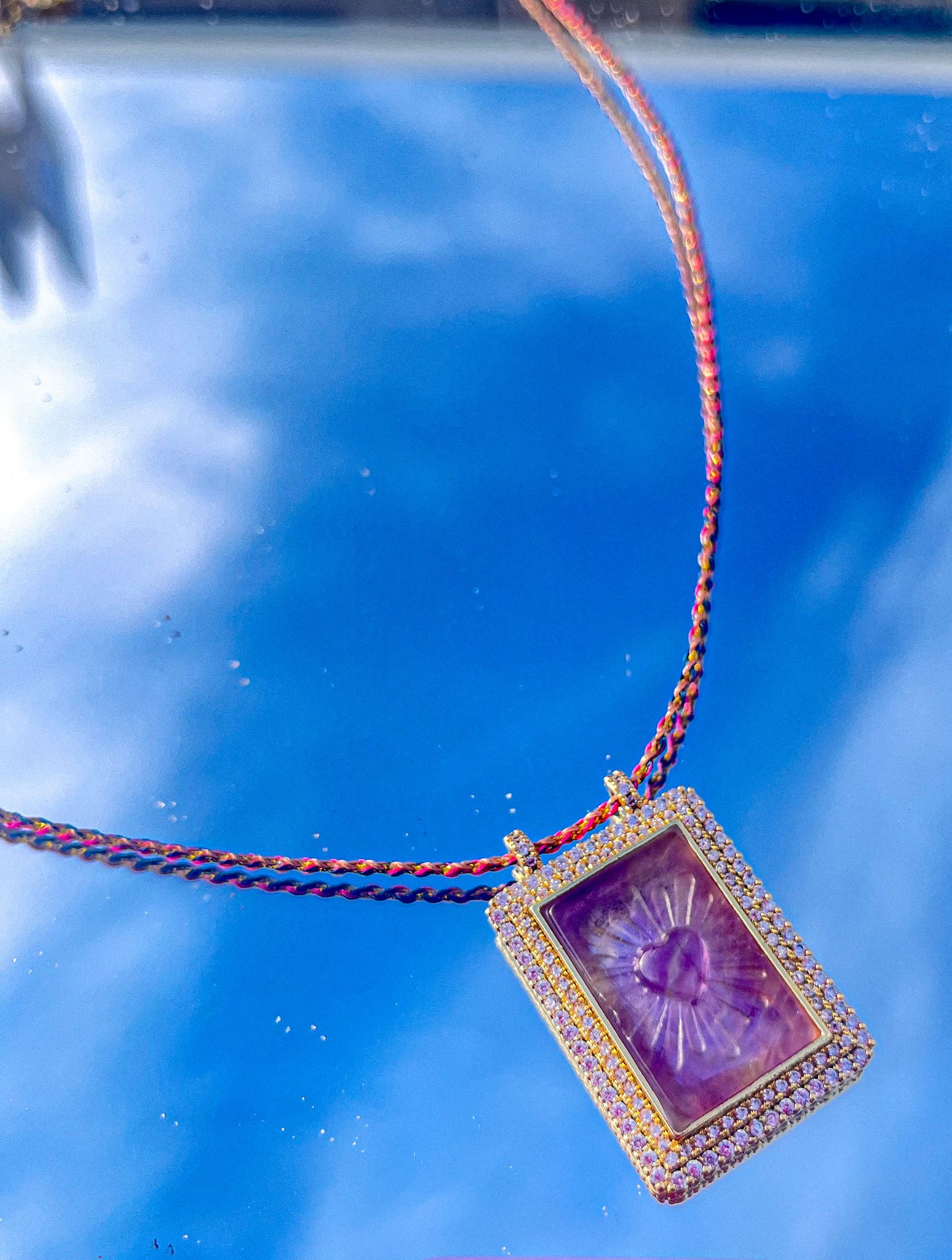 Un collier qui mêle mystère et tendresse. Le rectangle violet symbolise la créativité, tandis que le cœur apporte une touche d’amour et de douceur. Parfait pour ajouter une note chic et pleine de bonnes vibes à ton look. ✨